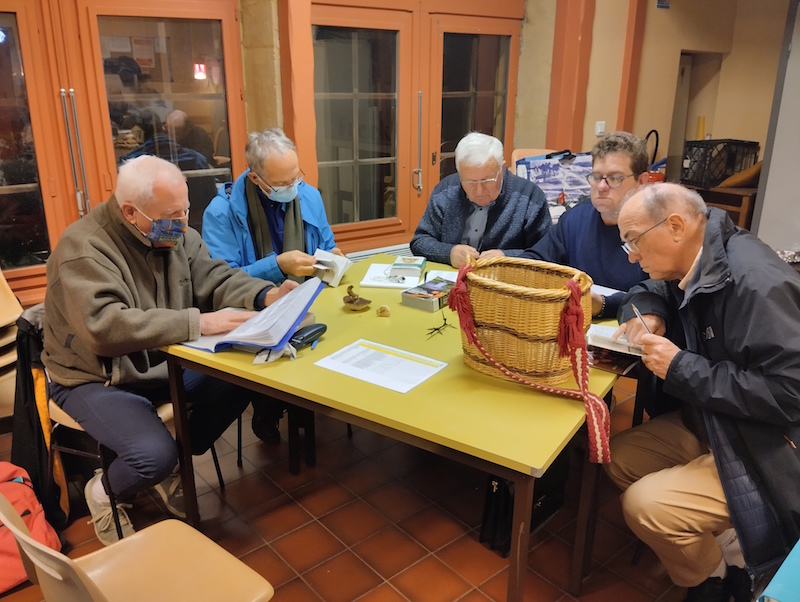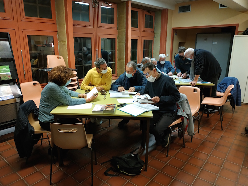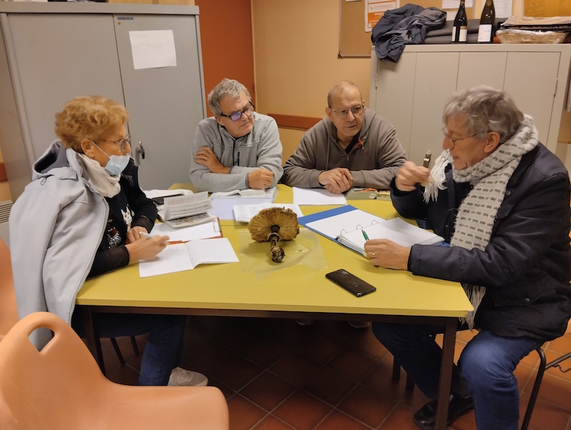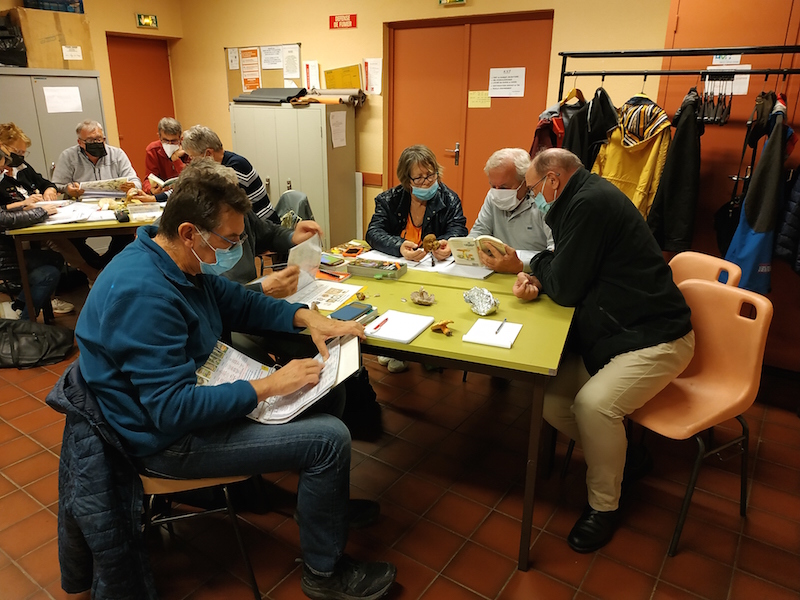 A raison d’un vendredi par mois, nos récents sociétaires sont donc pris en charge par Raymond Hybertie et Jean-Marie Préaud qui reprennent les bases et développent les contenus mycologiques à une bonne vingtaine de nos amis.
