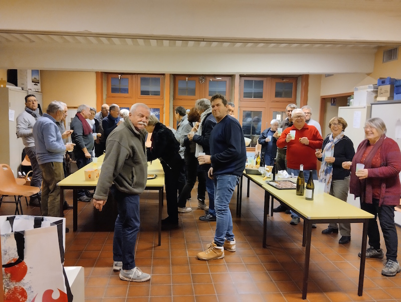La séance du vendredi 16 décembre 2022 a été clôturée avec un apéritif de fin d’année, afin de renforcer les liens de convivialité entre nous. Les autres sociétaires étaient également conviés, et la salle a pu accueillir une quarantaine de personnes. Voici quelques images de cette soirée.