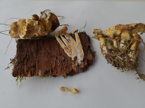 Pour ce dernier, c’est l’espèce que j’ai récoltée sur la tranche de coupe d’un pin et pour laquelle j’ai envoyé 2 photos. On s’était questionnés avec Christian autour de Lentinus/Pleurotus/Panus, et Daniel en a fait une microscopie et est arrivé à cette espèce. Dans la littérature, sur Champi.net, j’ai trouvé des échanges entre Yves courtieu et Laurent Francini sur cette espèce. Une autre adepte de ce site dit les trouver souvent à cette saison dans une forêt à marzuolus.